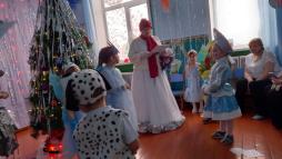 Все закружились в новогоднем хороводе. Малыши веселились у нарядной ёлочки с добрым Дедушкой Морозом, красавицей Снегурочкой и Снеговиком.