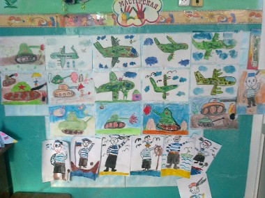 12.02.2020г.В нашем детском саду всегда проходит выставка рисунков к празднику 23 февраля. На занятиях ребята очень стараются рисовать танки и самолеты, корабли и моряков, военных.Лучшие работы мы выставляем на стенд для родителей.